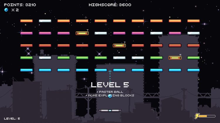 Tijolos coloridos estão cobrindo o céu noturno e cabe a você destruí-los para que os cidadãos possam ter uma visão clara das belas estrelas. Use qualquer uma das 2 pás e bolas distintas e combine-as e suas capacidades para chegar o mais longe que puder. Cuidado com os tijolos explodindo e tente evitar o desagradável "powerup" de controle reverso. Lembre-se; conforme você avança, as coisas ficam mais rápidas.