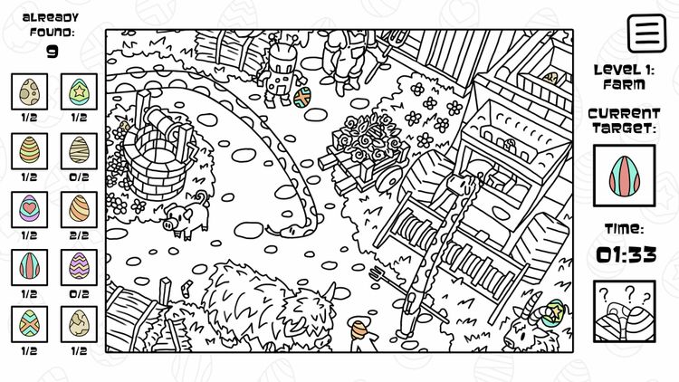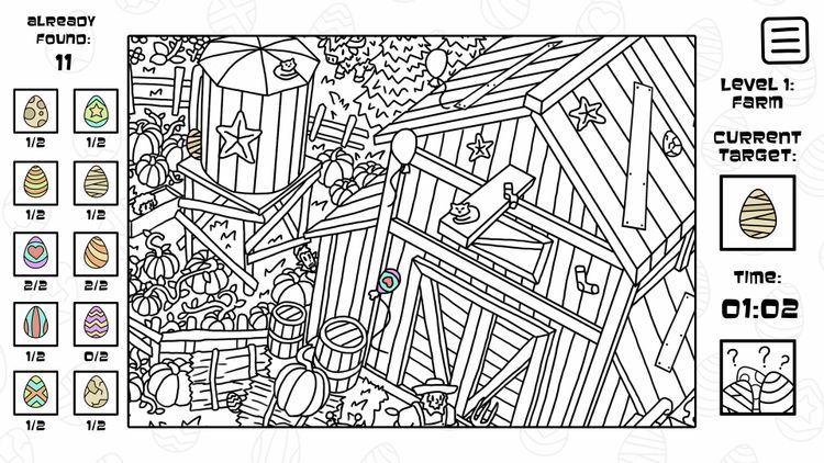 There's No Easter eggs é um jogo casual de objetos escondidos com mais de 500 ovos de Páscoa para encontrar. Você consegue pegar todos?