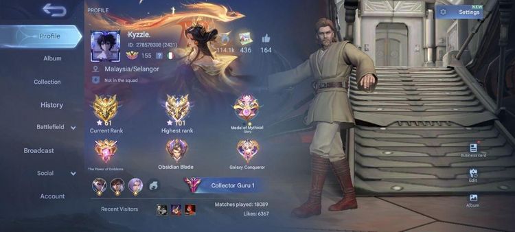 Contains level 155 account with Epic rank profile, 49% winrate and 14,385 matches with 1669 MVPs. Has 129 heroes and 440/996 skins with Collector Guru I badge, including multiple Legend skins for Freya and Alucard, Star Wars Alucard, Ducati Lancelot and Benedetta, Exorcists Granger, Aspirant skins, plus various other collaboration and premium collections. We offer a wide variety of game accounts, so if you’re looking for something specific, feel free to contact us. Have any questions? Don’t hesitate to message us!