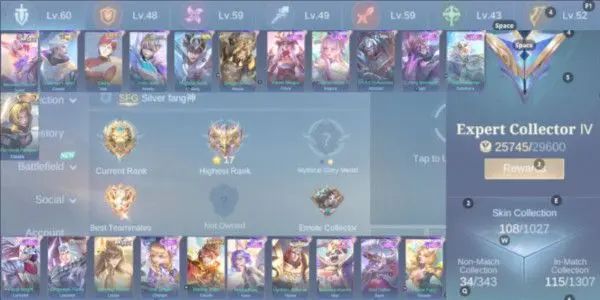 Premium account featuring Collector Natalia skin plus an extensive collection of 21 Epic skins: Nana, Tigreal, Akai Anniversary, Bane, Rafaela, Freya, Kagura, Johnson, Roger, Gatotkaca, Lancelot, Lancelot Epic, Lesley Mystic, Chang'e, Claude, Claude M6, Vale, Kimmy, Seiya, Badang, Masha, and Julian Mystic. The account includes high-level hero skins across multiple roles and Expert Collector IV status with approximately 25745 battle points available. Emblem system shows GG Collector Natalia emblem alongside other powerful emblems. Profile displays strong skin collection progress with 108 out of 1027 skins, 34 out of 343 non-match collections, and 115 out of 1307 match collections. The account maintains excellent cosmetic value with numerous premium limited-edition skins and specialized emblem setups, making it ideal for players seeking a well-rounded premium skin library. We offer a wide variety of game accounts, so if you’re looking for something specific, feel free to contact us. Have any questions? Don’t hesitate to message us!