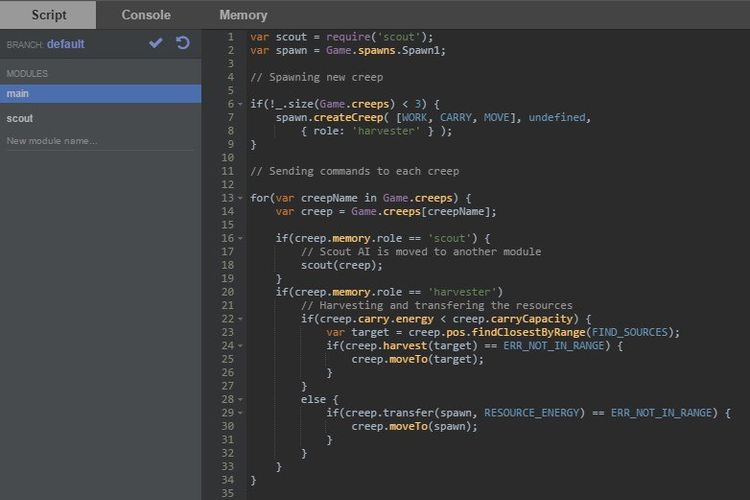 Screeps is developed for people with programming skills. Unlike some other RTS games, your units in Screeps can react to events without your participation – provided that you have programmed them properly. And, unlike other MMO, you do not have to play Screeps constantly to play well. It is quite enough just to check once in a while to see if everything goes well.