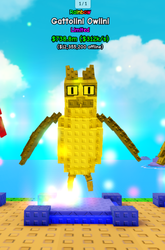 Plants vs Brainrot Items > Other > Rainbow Gattolini Owlini (312k/s)