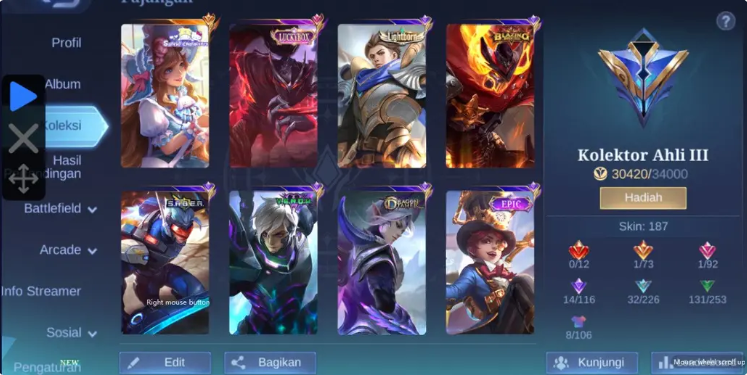 MLBB account max emblem, max hero, epic limited Hayabusa, Sanrio Floryn, Epic 13 LB 1 (G)