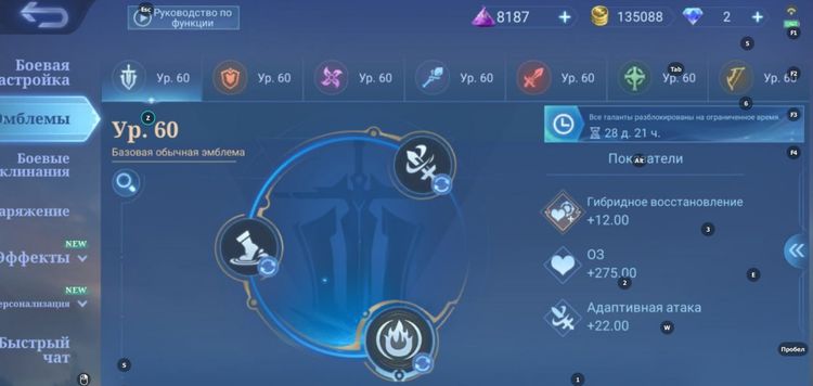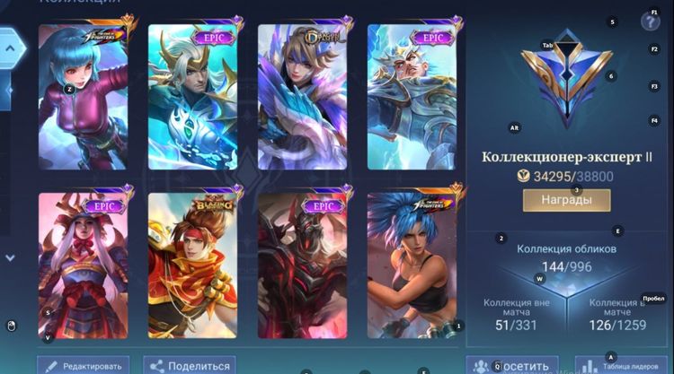 This Epic-rank level 63 account features 144 skins and 107 heroes with a peak of 108 stars in its highest season. Premium collection includes KOF (King of Fighters) Aurora and Karina skins, Collector Natalia, event-limited Myth2024 Clint, and LunarFest Sun among many others. The account is currently ranked Collector Expert II (34,295 points), with a solid 52% winrate and over 4,900 matches played. Other account highlights: broad Epic and event skin selection, full emblems, high resource counts (135,000+ gold, 8,100+ tickets, 2 diamonds), active premium effects, and a record of strong performance medals. Info Section Rank: Epic Level: 63 Skins: 144 Heroes: 107 Battle Points: 135,088 Diamonds: 2
