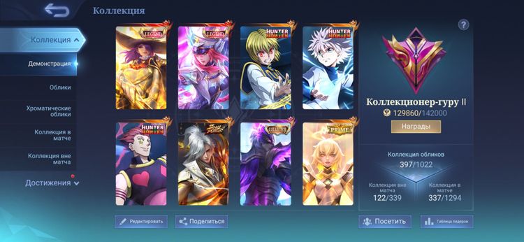 This account features 124 max stars and a unique collection of special skins including Legendary Leslie Freya, HxH series with Julian, Cecilion and Harit, Vessel of Deception Eamon, Prime editions for Beatrice and Chong, Collector Series Gossen and Natalia, GoldStar Leslie, and a LuckyBox set (Fanny, Hayabusa, Carrie, Gatotkaca, Leslie, Kaya, Leomord). Stun Chu, multiple Zodiac-themed skins (Hilda, Irithel, Lancelot, Martis, Badang), Valentine Cloud, Sparkle Melissa and Frederin, M-World Ling, plus tournament exclusives like M4 Beatrice, M5 Chong, and M6 Cloud. Many rare effects and special avatars showcased in the inventory. Includes 397 skins and 130 heroes unlocked, with a notable collection of chromatic, prime, collector, and Zodiac skins.. Required info: Rank: Epic Level: 156 Skins: 397 Heroes: 130 Battle Points: 0 Diamonds: 0