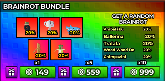 Raise Animal Items > Bundles > BRAINROT BUNDLE *10 (999 R)