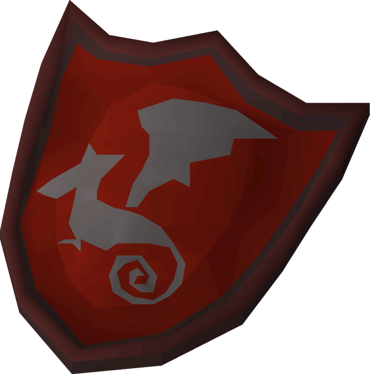 A dragon kiteshield is a kiteshield made by combining a dragon sq shield, dragon metal shard, and dragon metal slice at the Dragon Forge after the completion of Dragon Slayer II. This process requires a hammer and 75 Smithing, granting 1,000 Smithing experience. The dragon kiteshield does not require Legends' Quest to wield, despite being created from the dragon sq shield. Like other Dragon equipment, it requires 60 Defence to wield. Just like the dragon sq shield, the dragon kiteshield does not protect against Dragonfire. Players can attach a dragon kiteshield ornament kit, obtained from master clue scrolls, to create a gold-trimmed dragon kiteshield (g). This is only cosmetic, and does not affect the kiteshield's stat bonuses. It can be dismantled, returning the kiteshield and ornament kit.
